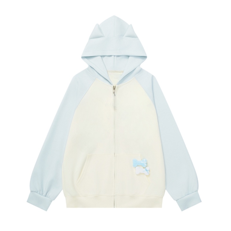 Color-Block Zip-Up Slim-Fit Cute Hoodie